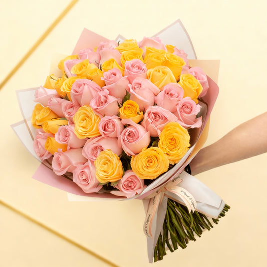 Ramo de Rosas Amarillas y Rosadas en Florero