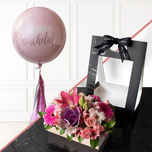Rosas Rosadas en Caja y Globo de Cumpleaños | Flores para enviar y sorprender | SET133