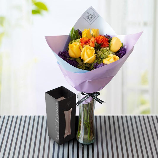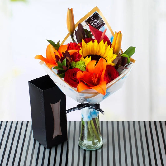 Sonnenblume, Anthurien, Rosen, Lilien, Safari-Blumenstrauß + Ballon-Blumenstrauß -SET031-