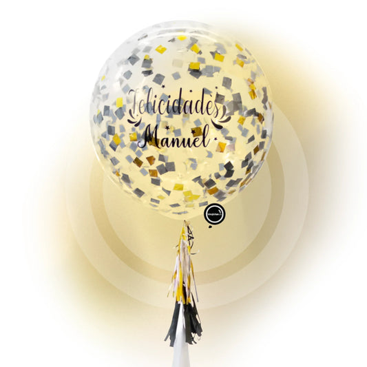Big balloon/personalized giant with Confetti -con Helio- Black/Gold/Silver Eco*